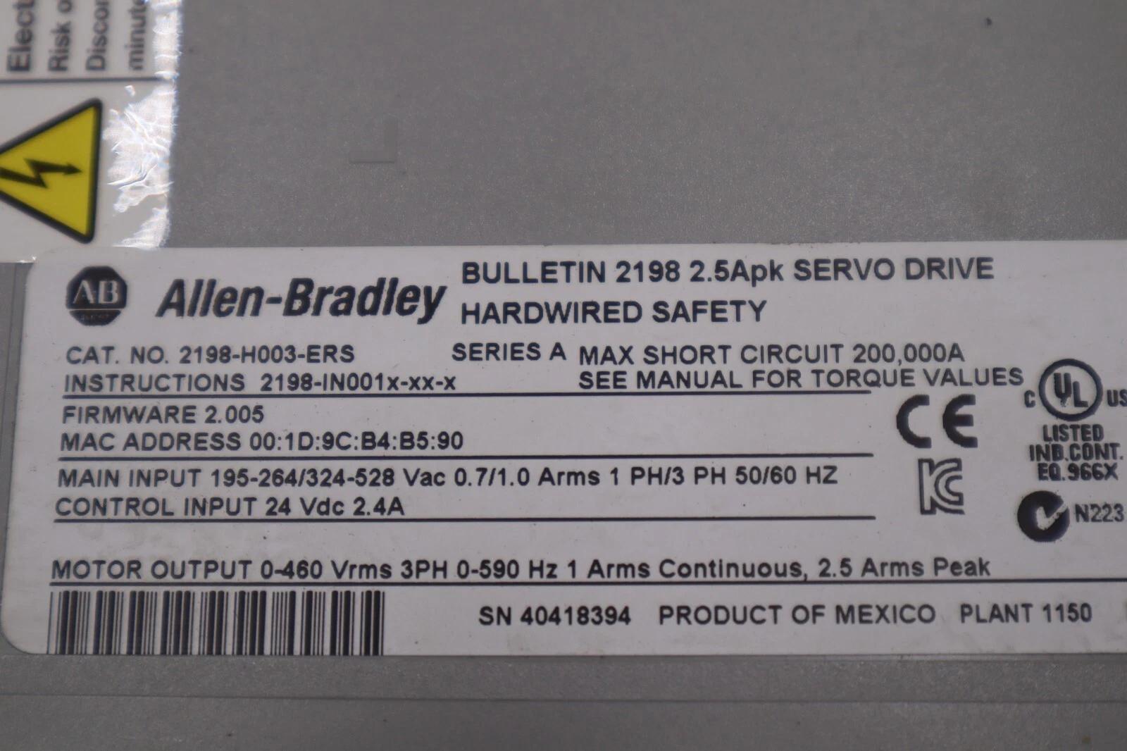 Allen Bradley 2198-H003-ERS | Kinetix 5500 Servo Drive STOCK 4189