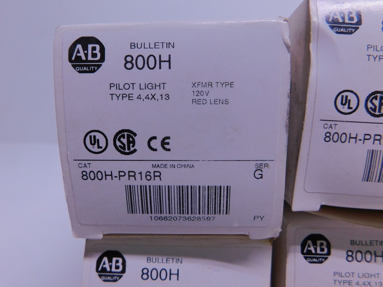 For sale is five (5) new unused Allen Bradley Pilot Light. Catalog number: 800H-PR16R. Type 4, 4X, 13. XFMR Type. 120 Volts. Red Lens.
