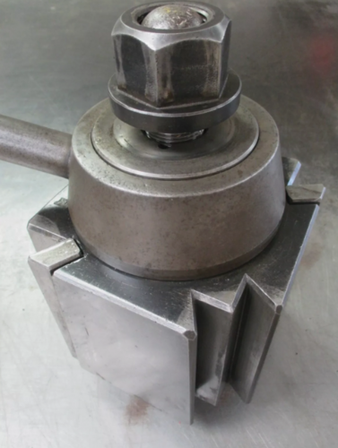 This is a USA Made Aloris Brand EA Lathe Tool Post that is ideal for lathes with a swing of 25" or more and includes a EA2 Toolholder with a capacity of 3/4" to 1-1/2" for square toolholders. Tool post is 6" square and includes the T-Slot Nut & this nut may have to be machined or replaced, that compound slot is not a standard size on any lathe. Then a v-groove runs along the 7" long bottom of the opening on the holder for holding up to 1-1/4" round boring bars, holder is solid and 4" high. With it's massive size and with the Aloris Dovetail Design you will get the maximum amount of rigidity for any job in your shop! We are a Aloris Distributor and stock many of the new holders, as well as many used holders, give us a call for details at 800-525-TOOL (8665)!