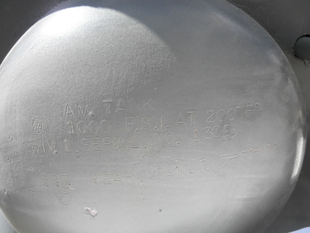 | Description: | Division 1 boiler rated at 1000PSI @200 degrees fahrenheit with exhaust stackTank is between 60 and 65 gallons. |