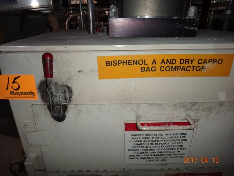 ITEM 1043: AMERICAN, PROCESS BAG COMPACTOR MODEL PO50-4721., SN 4721. EQUIPMENT TYPE PBC-50. BUILT 4-2003., COMPRESSED AIR ACTUATED. DESIGNED, TO COMPACT EMPTY BAGS FROM A BAG DUMP STATION., PRICE, FOB MILLWOOD, WV.
