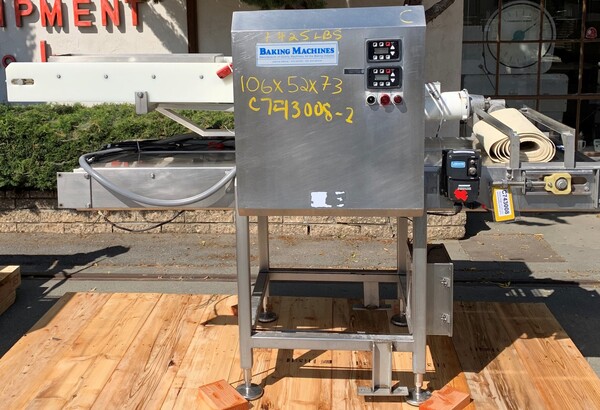 Baking Machines, Sheeter, Stainless Steel, 25" width x 25' OL, 10" diameter Roll, 28" H infeed, 25.5" sheeting roller Manufacturer: Baking Machines Description: sheeter Stock # C743008 Request a Quote 10 For Sale by Machinery & Equipment Co Surplus Record Dealer Since 1969 Contact Seller Brisbane, CA Dominic Piazza 415-64...> Show Seller's Phone Number 415-649-9611 Let the seller know you found their listing on Surplus Record! View More Machinery & Equipment Co 's ListingsDescription Baking Machines sheeter, 25" wide X approximately 25' overall length, includes three compression sections, first section with 10" diameter roll, middle section with (4) rollers and final section with 10" diameter roll. Infeed height is approximately 28", sheeting roller is 25-1/2" wide. Also includes top mounted flour applicator, mounted above belt. All stainless steel construction. In working condition when removed from service. Complete with all stainless steel control panel. Previously used in potsticker dough application.Measurements: 25" wide X approximately 25' overall lengthMaterials of Construction: Stainless SteelPrevious Use: Food Processing FacilityBasis: FOB Request More Information from SellerGet Your Price from Machinery & Equipment Co! "*" indicates required fieldsName*Company*Email* PhoneZip / Postal Code*QuestionMake an OfferRequests Send me a shipping quote I am interested in financingSend Copy Email me a confirmation of this inquiryBuyer Protection Use our partner Escrow.com to buy or sell equipment safelyBuyer Protection Send me info about buyer protectionThis field is hidden when viewing the formDealer Email Buyers Who Viewed This Listing Also Viewed … Apv Baker Baker, bakery equipment rounders, automatic dough divider, 20-190 pieces/minute, low stress designCategory: Bakery EquipmentSeller: Frain IndustriesLocation: Carol Stream, IL Mfr: Apv BakerAutomatic dough divider capable of running 20 to 190 pieces per minute. Scaling range from 12 oz to 38 oz. Low stress design with jacketed rollers for cooling. AB plc controls and soft start drive. Last used for bread., OAD: 102" (L) x 64" (W) x 86" (H). BEcome #MDR-6000-A, 4 pocket divider/rounder, 2015Category: Bakery EquipmentSeller: EcReCon Inc.Location: Pedericktown, NJ Mfr: BecomeModel: MDR-6000-AYear: 2015, BEcom 4 Pocket Divider Rounder, Model MDR 6000 A. Serial# 12233539-15.010. Built 2015. 2kW. Previously used in sanitary application, bakery. Video of unit running available., 2015 BECOM MDR 6000 A, Item. Divider/Rounder, Material. STAINLESS STEEL. APV, Frozen Cookie Dough Machine, 16", 460 VCategory: Bakery EquipmentSeller: Aaron Equipment CoLocation: Schaumburg, IL Mfr: Apvused- apv baker 16" frozen cookie dough machine. unit in good working condition. electrics 3/60/460v. Fedco #PMI-2032-CO, PredusterCategory: Bakery EquipmentSeller: HGR24Location: Euclid, OH Mfr: FedcoModel: PMI2032COInventory No. 0925-167-0039 Manufacturer Fedco Model No. PMI-2032-CO Name Preduster Arrival Date 10-09-2025 Dimensions L x W x H (inches) 108 x 58 x 74 Weight (lb.) 1580 Category Chemical Processing Condition Used Available Quantity 1 Serial No. 215 Item Made In Usa. AMF 2000 Dough Pump W/ Control systemCategory: Bakery EquipmentSeller: Elite MachineLocation: Seattle, WA Mfr: AmfModel: 2000Share × "*" indicates required fieldsYour Name*Your Email* Recipient's Email* Note to Recipient