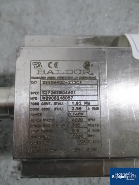 Baldor #SSBSM80C-275CA, Stainless Steel mixer, 1 HP motor, 4000 RPM, 300 V., serial #W0908248057, #2792-79 Manufacturer: Baldor Model: SSBSM80C-275CA HP: 1.00 Stock # 2792-79 Request a Quote 5 For Sale by Federal Equipment Company Surplus Record Dealer Since 1965 Contact Seller Cleveland, OH Sales or Contact Rep. 866-74...> Show Seller's Phone Number 866-740-5490 Let the seller know you found their listing on Surplus Record! View More Federal Equipment Company 's ListingsDescription Used Baldor stainless steel mixer Cat # SSBSM80C-275CA, 1 hp motor, rated speed 4000 RPM, 300 volt, max speed 7000rpm. serial# W0908248057. Request More Information from SellerGet Your Price from Federal Equipment Company! "*" indicates required fieldsName*Company*Email* PhoneZip / Postal Code*QuestionMake an OfferRequests Send me a shipping quote I am interested in financingSend Copy Email me a confirmation of this inquiryBuyer Protection Use our partner Escrow.com to buy or sell equipment safelyBuyer Protection Send me info about buyer protectionThis field is hidden when viewing the formDealer Email Buyers Who Viewed This Listing Also Viewed …JUST ADDED! Inversion Machines #Max-Sphere-45L, turbula mixer, 150 lb. capacity, 1 HP (2 available)Category: Miscellaneous Mixers and BlendersSeller: Detroit Process MachineryLocation: Detroit, MIModel: MAX-SPHERE-45L Brawn Mixer Baldor #BD-100 Motor 1 HP 208-230/480V 3.6-3.4/1.7A 1725RPM 60Hz 3PHCategory: Miscellaneous Mixers and BlendersSeller: OK Sales IncLocation: Burlington, NC Mfr: BrawnModel: BD-100Brawn Mixer Baldor BD-100 35N425-0087G1 Industrial Motor 1HP 208-230/480V 3.6-3.4/1.7A 1725RPM 60Hz 3PH Frame 56C, Condition Notes: Good owkring condition., Used working condition. Item pictured is the exact item you will receive, unless multiple quantities listed., Most Items ship same or next business day of payment ...more Atlantic Research Helicone #2CV, Stainless Steel Mixer, 15-150cc capacity, 1/2 HP mtr.dr, less mixing chamber, #44885Category: Miscellaneous Mixers and BlendersSeller: Federal Equipment CompanyLocation: Cleveland, OH Mfr: Atlantic ResearchModel: 2CVUsed Atlantic Research Helicone mixer, model 2CV, stainless steel construction, 15-150 cc capacity, ).5 hp dc motor drive, less mixing chamber, serial# 76-6012-66. Baker Perkins mixer blender jam hopper, 304 Stainless Steel, 1735 RPM, 230YY/460YCategory: Miscellaneous Mixers and BlendersSeller: Equipment Recovery CorpLocation: Willoughby, OH Mfr: BakerBrand: BAKER PERKINS, Condition: USED, "AS-IS", Model: -, Material: 304 SS (ENTIRE UNIT), 316 SS MIXER BLADES, Serial: -, Power Rating: 3 HP, 1735 RPM, 230YY/460Y VOLT, 8/4 AMP, Weight: APPROXIMATELY 2,500 LBS., Category: BLENDERS, ERC #: MD-2, Job #: 066, Additional Notes: HOPPER SIZE: 42" x 56" x 50" SHIPPING ...more Bellaform #BSW-135, High Shear, Continuous, Roller type, Up to 110 Lbs./Hr.Category: Miscellaneous Mixers and BlendersSeller: Liberty Machinery CoLocation: Lincolnshire, IL Mfr: BellaformModel: BSW-135Year: 2014High shear mixers like the Bellaform BSW-135 are an excellent option for high-purity, contamination-free, continuous processing of medium to high viscosity feedstocks. They are the best constantly functioning open design process for melting, homogenizing, dispersing, compressing, and granulating. High shear mixers are ...moreShare × "*" indicates required fieldsYour Name*Your Email* Recipient's Email* Note to Recipient