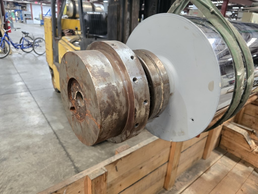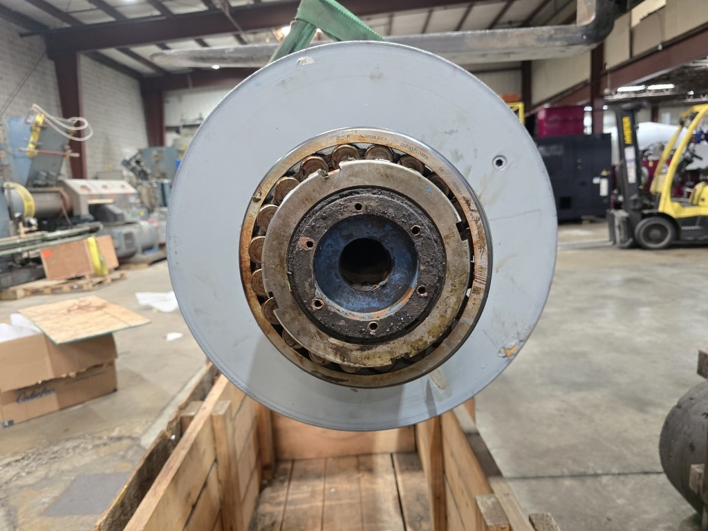 Item 6328 - One (1) Used Farrel 15" Rubber Dump Extruder, drop extruder, hot feed extruder, feed opening 36" wide x 24.5" deep, stuffer ram 35" wide x 8" thick with 13" stroke, 95:1 total gearbox reduction (19.4:1 primary gearbox X 4.93 secondary gearbox), GE 200hp 1150/1800 RPM 500 VDC motor, enlarged feed section ...more