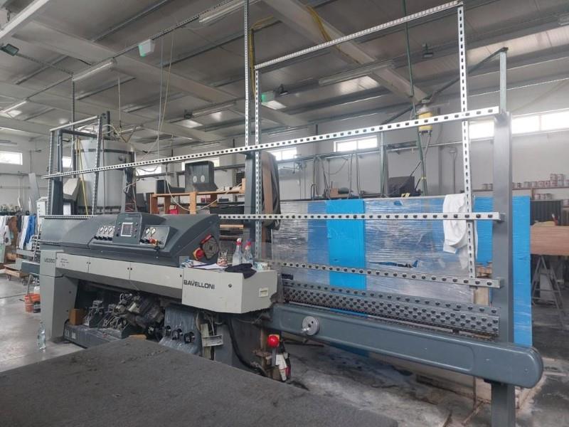 BAVELLONI VE 350 Straight-Line Edging Machine (11) Spindle Vertical Straight Edging machine for the processing of flat edge and arris with cerium oxide polishing on the edge.Chamfering spindle able to cut the corners from sheets while the edging operation is being performed. It can be used to temper glass, and generally when the rounding off of corners is required. The PATENTED system allows 45 corners to be executed perfectly, also at maximum speed (5 m/min), and guarantees the evenness of the 4 corners.Wheel Configuration: (3) Diamond wheels (150 mm) for flat edge(2) Diamond wheels (150 mm) for arris(2) Polishing wheel (150 mm) for arris(3) Polishing wheel for flat edge(1) Polishing wheel with CeriumSpecifications: ● Spindles: 11 ● Right to left operation ● Feed: 0.5 - 5.5 m/Min ● Glass thickness: 3 - 40 mm ● Min. glass height: 55 mm ● Working height: 812 mm (32")NOTE: Machine is in good condition as seen in the photos and available for immediate shipment.NOTE: EX-FACTORY’s Logistic Department is experienced and setup to provide “Full Service Logistics"; from Overseas Suppliers to your Door. …Packaging, Container Loading, Ocean Freight, Marine Insurance (door to door), US or Canadian Customs, Duty and domestic shipping to your Plant Door.