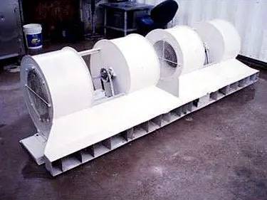 (2) Four Fan Air Curtains. Catalog Number: B0961, Unit Number: BC-150C, Product code: 176-315CA. Blower housing 25. One motor controls 2 blower units at a time via a Pulley/chain system. Total motors per. blower unit is two. Unit 1: Lincoln motor, 2 hp, 1720 rpm, 230/460 V, 6.2/3.1 amps, 60 Hz, 3 phase. Pulley ratio: 1. Final rpm: 1720. General Electric motor, 2 hp, 1720 rpm, 230/460 V, 6.2/3.1 amps, 60 Hz, 3 phase. Pulley ratio: 1. Final rpm: 1720. Unit 2: (2) Lincoln motor, 2 hp, 1720 rpm, 230/460 V, 6.2/3.1 amps, 60 Hz, 3 phase. Pulley ratio: 1. Final rpm: 1720. Overall dimensions: 9 ft. L x 34" W x 31" H.