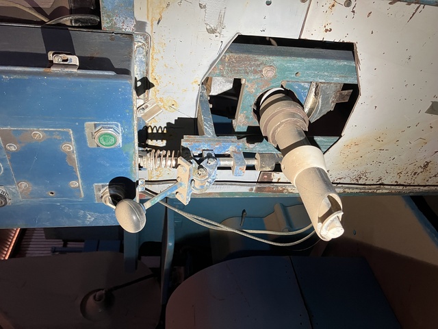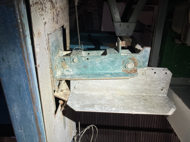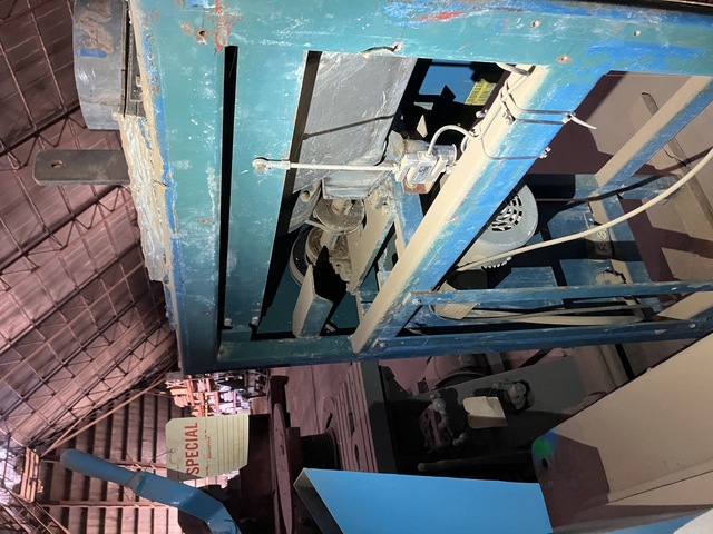 Used Bemis Packaging Machinery Co Valve Bag Air Packer model 5500 E 424, 12" stainless steel product charging chamber with 8" O.D. product inlet & side viewing glass., 12" mild steel pneumatic butterfly valve., Bag Filling Spout: 2 " O.D. PVC, Installed adjustable bag chair with kicker and a 100LB ...more