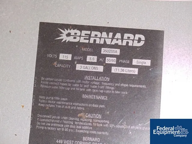 Used Bernard water circulation pump, model 3502SSA, 3 gallon capacity, serial number WC13204