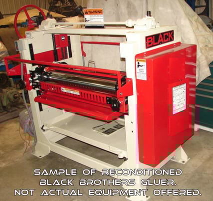 Black Brothers 22-D-500-26, Top Glue Spreader, 32" width, 3-1/2" opening, 6-1/2" applicator diameter, 4-1/2" doctor diameter, 88 FPM Manufacturer: Black Brothers Model: 22-D-500-26 Stock # GE-011000 Request a Quote 2 For Sale by Ex-Factory Surplus Record Dealer Since 2022 Contact Seller Charlotte, NC Sales Dept. 704-28...> Show Seller's Phone Number 704-285-2223 Let the seller know you found their listing on Surplus Record! View More Ex-Factory 's ListingsDescription BLACK BROTHERS 22-D-650-32 Top & Bottom Adhesive Spreader; Top & Bottom Roll Glue Spreader with 32" capacity. -- 6-1/2" Rubber glue applicator rolls with smooth surface glue application , flow controlled by 4-1/2" Neoprene doctor rolls. -- Single speed feed drive motor - 88 FPM. -- Lower elevator opening 0" - 3-1/2". -- Complete with: Magnetic start and all guards and labels. Request More Information from SellerGet Your Price from Ex-Factory! "*" indicates required fieldsName*Company*Email* PhoneZip / Postal Code*QuestionMake an OfferRequests Send me a shipping quote I am interested in financingSend Copy Email me a confirmation of this inquiryBuyer Protection Use our partner Escrow.com to buy or sell equipment safelyBuyer Protection Send me info about buyer protectionThis field is hidden when viewing the formDealer Email Buyers Who Viewed This Listing Also Viewed … Black Brothers #22-D-875, Top & Bottom Glue Spreader, 74" Width capacity, 8.75" diameter Applicator Roll, 88 FPM, 1 HPCategory: Glue SpreadersSeller: RT MachineLocation: Hughesville, PA Mfr: Black BrothersModel: 22-D 875Black Brothers Model 22-D 875 74" Top & Bottom Glue Spreader Width Capacity: 74" Top Elevator Style Glue Spreader (Constant Pass-Line) Main Motor: 1 HP, 3ph Feed Speed: 88 FPM Grooved Rubber Covered Applicator Rolls Applicator Roll Diameter: 8-3/4" Smooth, Hard Rubber Covered Doctor Rolls Thickness Adjustment via ...more Black Brothers #22-D-875-56, Laminating & Gluing Equipment Line, 56" Glue Spreader, 8-3/4" Neoprene applicator roll, pinch roller, scissor lifting tablesCategory: Glue SpreadersSeller: Lenmark IndustriesLocation: Langley, BC Mfr: Black BrothersModel: 22-D-875-56SKU: 120140, Model: 22-D-875-56, Condition: Used, S/N: 196859, Additional :, Glue Roller Laminating and Finishing Equipment, Condition: Fully Refurbished, S/N: 196859, Shipping Dimensions: 96" L x 48" W x 67" H, Weight: 2,800 lbs., BLACK BROTHERS ''22-D-875-56'' GLUE SPREADER (TOP) Top ...more Black Brothers #22D, Glue Spreader, Max working width 50" Max working thickness 3"Category: Glue SpreadersSeller: Carolina Machinery SalesLocation: Monroe, NC Mfr: Black BrothersModel: 22DBlack Brothers 22D glue spreader, Max working width 50"Max working thickness 3", 1/2 Hp, 230/460 volt three phase drive motor, Table passline height 40", 7-1/4" diameter x 50-1/2" long top and bottom chrome doctor rollers, 9" diameter x 50-1/2" long top and bottom rubber covered applicator rollers, (Please note that ...more Black Brothers #775, hot melt adhesive spreaderCategory: Glue SpreadersSeller: WrebbitLocation: Montreal, QC Mfr: Black BrothersModel: 775Year: 1999 Black Black Brothers 48" Glue Spreader, Machine Tag 8/10/43-3/7/44, SN 78856, Older Style in Excellent Condition, Tag #16326Category: Glue SpreadersSeller: Yeoman Machinery CorpLocation: Elkhart, IN Mfr: Black BrothersShare × "*" indicates required fieldsYour Name*Your Email* Recipient's Email* Note to Recipient