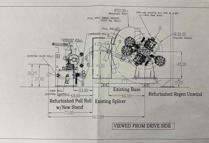 Used 65" EGAN Turret Unwind with Dancer & Pull roll assemblies
