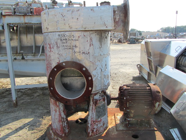 Used Black Clawson 30P pressure screen stainless body, flat steel bolt on lid, gear driven. 4-blade rotor, no basket. 30 HP AC motor 208/220/440, 60 cycle 1170 rpm. With base.