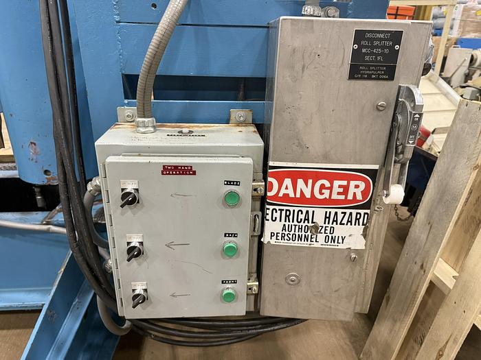 Black Clawson, 48" x 108" hydraulic roll splitter, 60" roll diameter