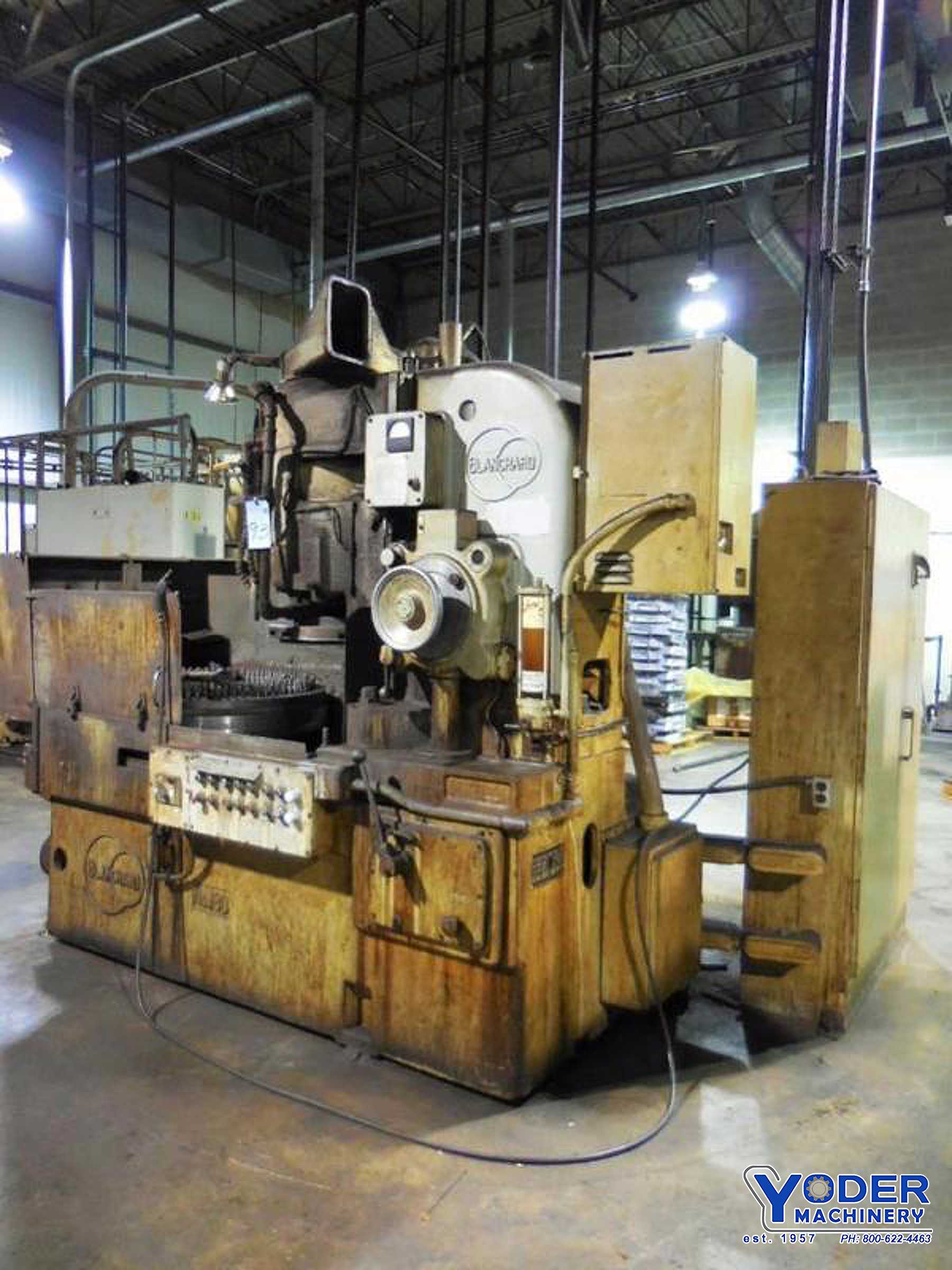 Used BLANCHARD 20K-36 Rotary Surface Grinder s a 36" magnetic chuck, 40 hp power, and a 42" swing. auto lubrication, oil skimmer, and conveyor base option. Compact with a 20" grinding wheel and multiple chuck speeds. The machine is the conveyor base option, and a sludge tote box for heavy duty grinding., Chuck Size ...more