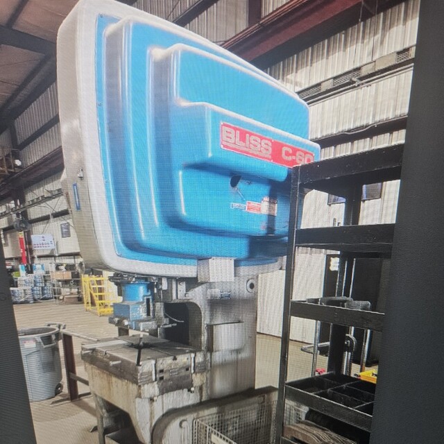60 Ton, Bliss #C-60, OBI flywheel press, 4" stroke, 14.25" Shut Height, air clutch, 100 SPM, dual palm button Control