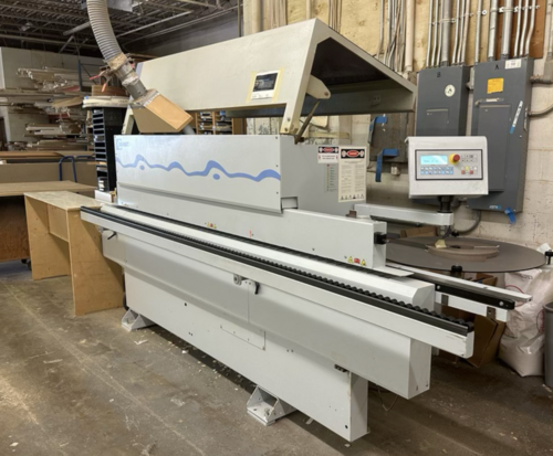 Brandt Model Optimat 1440 KDF 440 AT Edgebander Includes "AirTec" Hot-Air Edgebanding Capabilities Edge Band Thickness: 0.4 - 8mm Panel Thickness: 8 - 60mm Min. Panel Length: 160mm Min. Panel Width: 70mm Two-Motor Pre-Milling Unit (Counter-Rotating) Three-Roll Pressure Section w/ Pneumatic Guillotine Two-Motor ...more