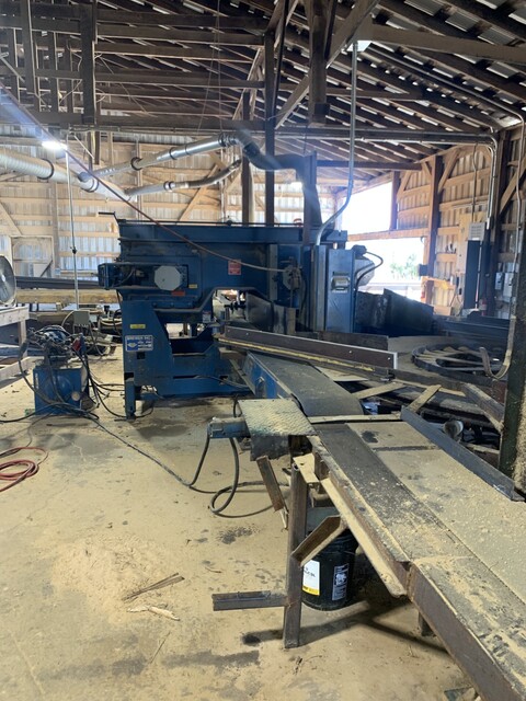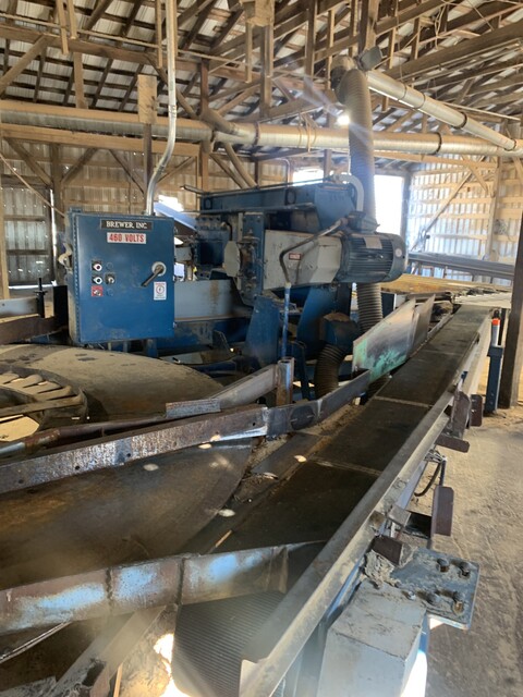 BREWER - GE 2000-3B: 3-Head Horizontal Resaw -- Cant capacity: 8" W x 12" H x Random length; Saw kerf: 0.083". -- Blade wheel size: 36" Diameter x 2" W; blade length: 198", blade width: 1"; 1-1/4";; 1-1/2"; or 2". -- Hydraulic variable feed speeds: 20 to 100 FPM.: -- (3) 20 HP Saw head motors; rough-top feed belt. -- ...more