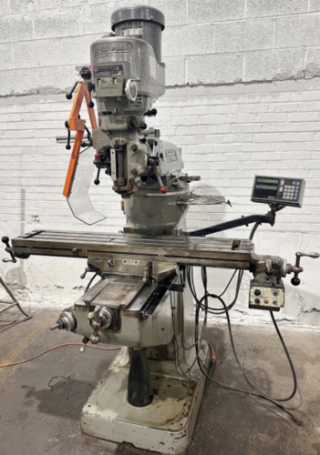 BRIDGEPORT VERTICAL MILLING MACHINE WITH PROTRAK EMX 2-AXIS CONTROL WITH 3-AXIS DIGITAL READOUT, New 1993, Prototrak EMX 2-Axis Control with 3-Axis Digital Readout, Power Tool Lock, Power Feed to X & Y Axis, 1 Shot Lube, Table Size 9" x 48", Horse Power 2, Travels, Longitudinal 36", Cross 12", Power Quill ...more
