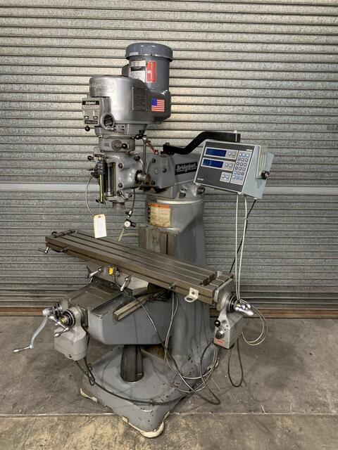 Bridgeport #Series-I, vertical mill, 9" x42" tbl., 1.5 HP, SWI Trax 2-Axis digital read out, Lyman MK4 X-Axis power feed, 60-4200 RPM, chrome ways
