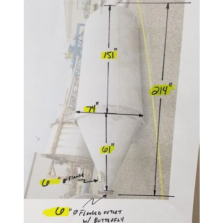 196 cu.ft., Surge Bin, Carbon Steel, 66" dia.x 69" straight side x 92" deep cone bottom, flat top, dust collector, pulse jet, #43970-71 (2 available)