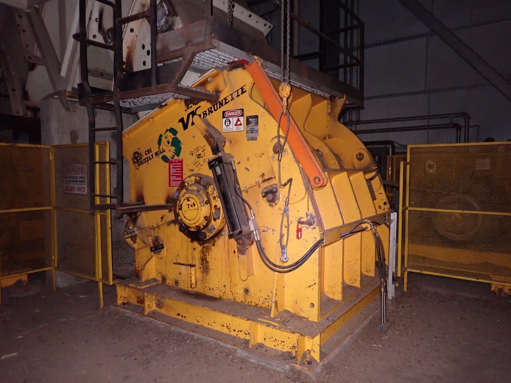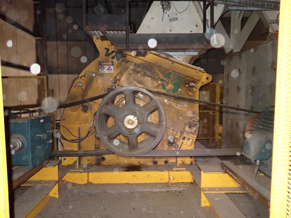 Gruendler, horizontal grinder, belt feeder system, 300 HP, 4000 V., 1180 RPM, 40.5 Amps., Type RGS