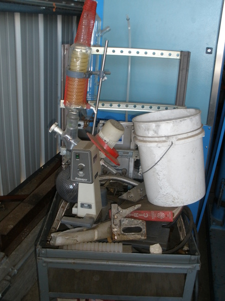 Used Buchi RE111 rotavapor. On cart. With glass bottle with coils.