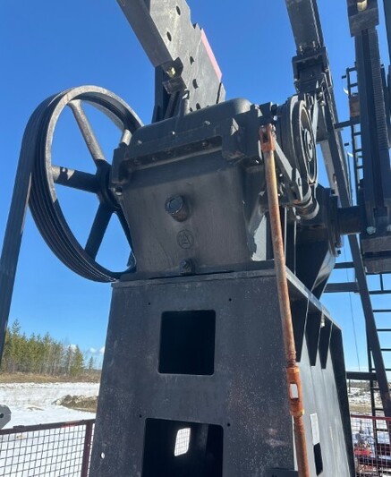 For sale: A 2013 Daqing C456D-305-468 Conventional Pump Jack, complete with an optional Arrow driver (A-54/106/96). This unit is operational and connected, located on a concrete pad in Drayton Valley, Alberta. Serial number: DPEG-2013-010. Condition rated as 'c'. No warranty available.