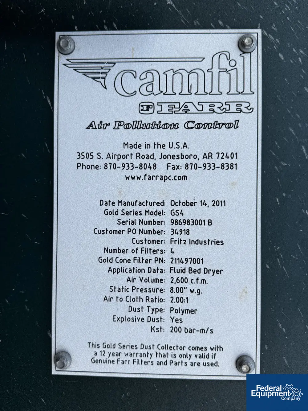 For Sale by Federal Equipment Company