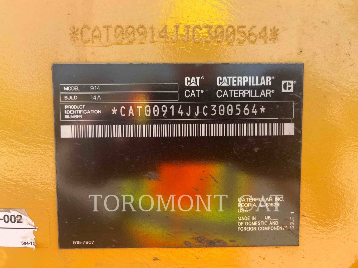 914 14A WHEEL LOADER, ALARM, BACK-UP, ARCTIC WEATHER PACKAGE, 120V, CAB, DELUXE, SINGLE BRAKE, CAMERA, REAR VIEW, COUPLER, IT, STD LIFT, CTWT STANDARD, 1973 LBS, Engine, FAN, DEMAND, FENDERS, STANDARD, HEATER AND AIR CONDITIONER, HYDRAULIC OIL, STANDARD, HYDRAULICS, 3V, STD LIFT, INSTRUCTIONS, ANSI, JUMPER HOSE, 3V ...more