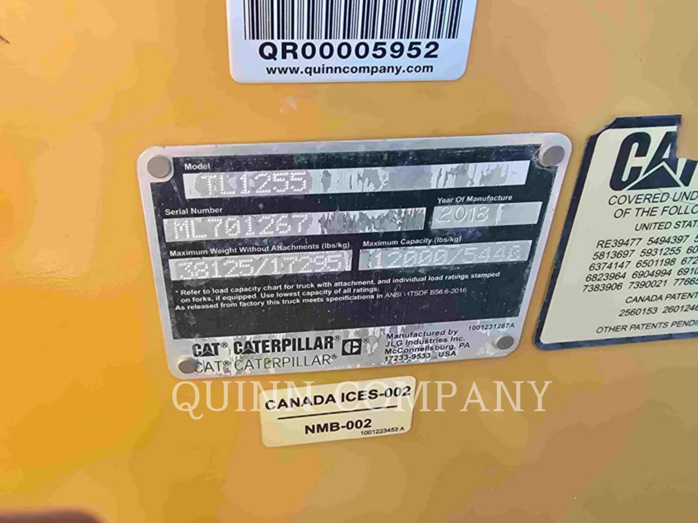 Cat TL1255D, Telehandler, 4335 hours, S/N: ML701234, 2018