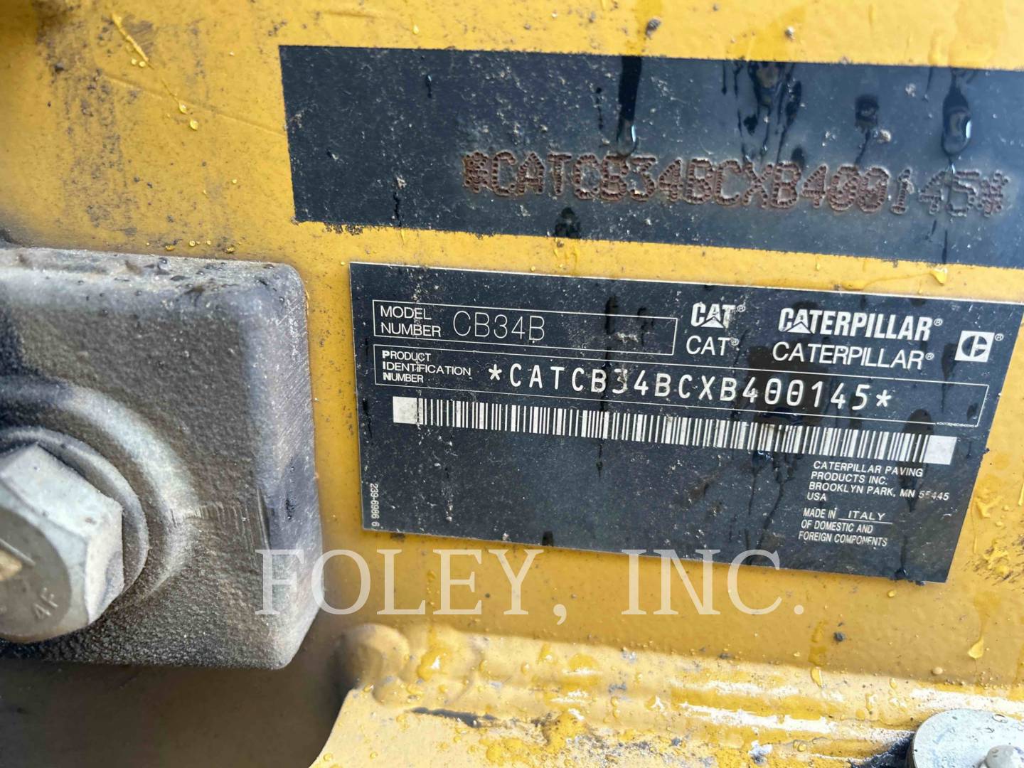Caterpillar CB34B, Vibratory Single Drum Asphalt, 4484 hours, S/N: XB400188, 2016