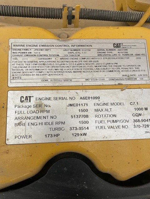 There are 2 CATERPILLAR Marine C7.1 Generators for sale. These 2 units were just removed from a decommissioned ship. The newest C7.1 Serial #JME01171 has 4,726 hours on it when we removed it from the vessel and put it in the shop in good running condition. We bought them in 2018 I have the delivery documents. The older of the two C7.1 Serial # JME00003 had 12,847 hours was the field follow with the controls it had been factory maintained with recent upgrades in good condition as well. Prices:The 4,726 hour -$22,500.00 The 12,847 hour -$18,500.00