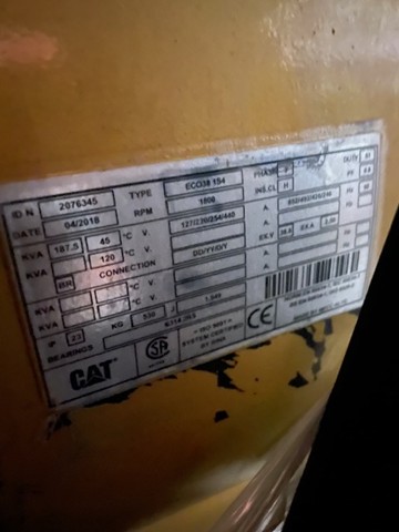 Stock#: IE200-289-CT Fuel: Diesel Year: 2022 Voltage: 120/208 Volts Hours: 0 Hours Phase: 1/3 Phase Make: CAT Model: D200GC Serial: CAT0D200CT9W00352 Hertz: 60 Hz Wires: 12 Lead Kilo Watts: 200 kW Mounted: Skid Mounted Fuel Tank: Base Fuel Tank Enclosure: Sound Attenuated Enclosed: Enclosed Lead: Reconnectable Length: ...more