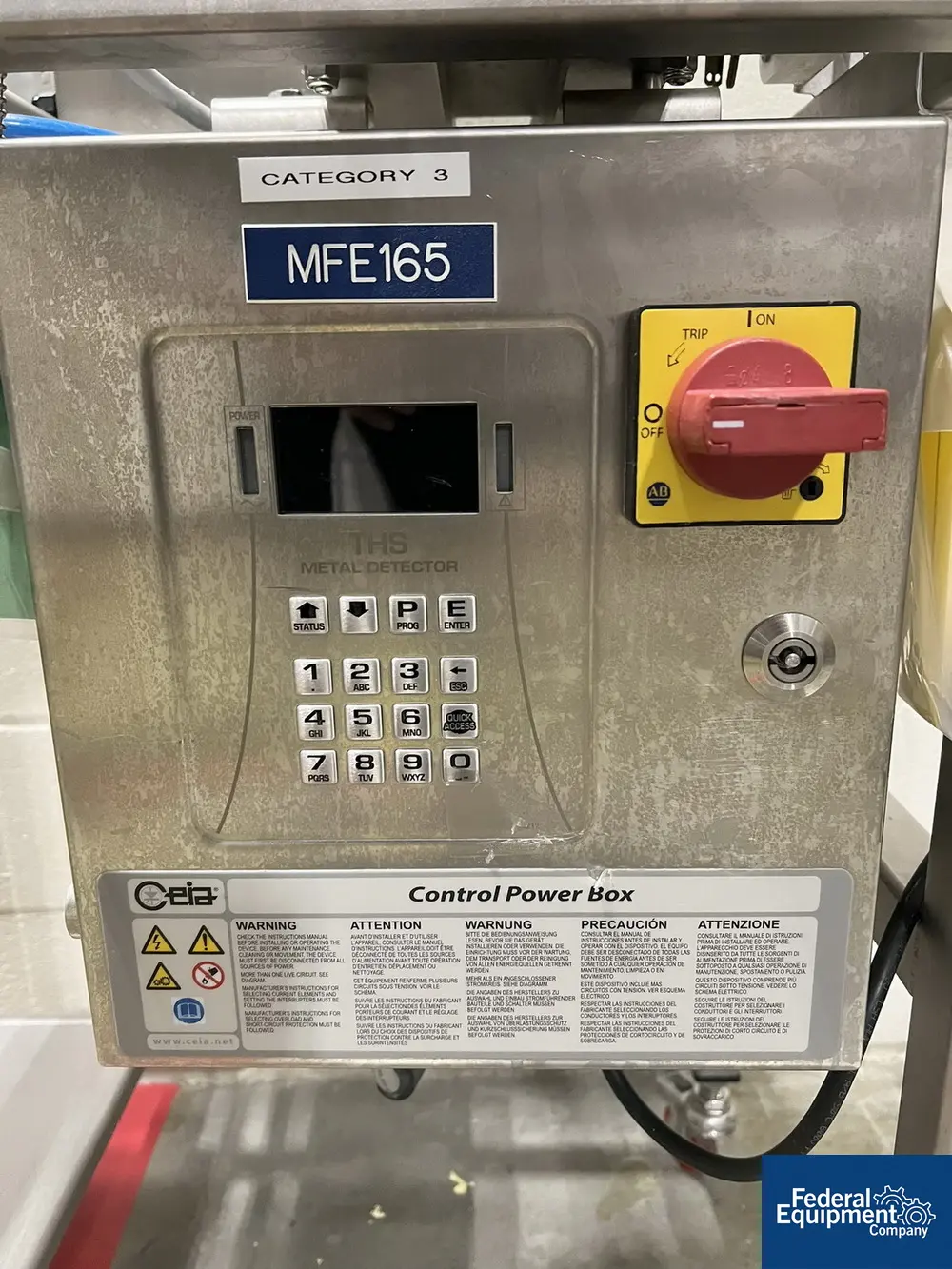 Ceia #THS/3F, Metal Detector w/belt conveyor, 10" width x 5" H aperture, 1.2 mm ferrous/1.5 mm non ferrous/2 mm Stainless Steel capabilities, 60 FPM, 1 HP