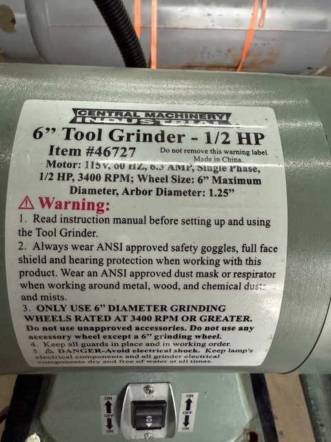 Central Machinery 6" Tool Grinder #7697 #1