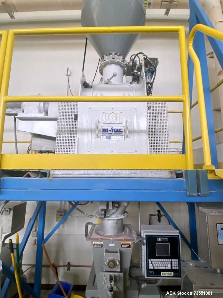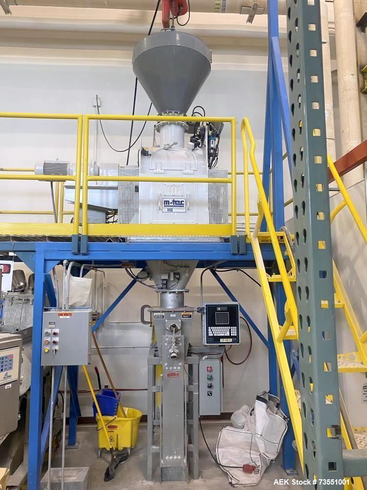used chantland 4190 auger valve bagger with integrated m-tec mr11v batch paddle mixer stainless steel contact parts. chantland model 4190 valve bagger. chantland model 4190 valve bag packer. capable of speeds up to (6) 50# bags per minute. weight range: (bags) 20lbs to 110lbs (drums) 50lbs to 220lbs. stainless steel contact parts. has a 2" diameter screw and a 2-1/4" diam housing. previously used for gypsum powder.