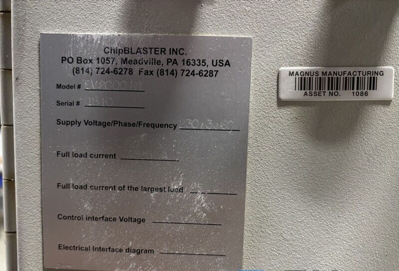 Chipblaster #EV2000RI, high pressure high volumn coolant sy, 2000 psi, 3-13 GPM, 30-45 psig Manufacturer: Chipblaster Model: EV2000RI Description: high pressure high volumn coolant sy Stock # 30734 Price: $1,450 USD Request Info 8 For Sale by Mohawk Machinery Inc Surplus Record Dealer Since 1956 Contact Seller Cincinnati, OH Mr. Secord 513-77...> Show Seller's Phone Number 513-771-1952 Let the seller know you found their listing on Surplus Record! View More Mohawk Machinery Inc 's ListingsDescription 2000 PSI CHIPBLASTER "EV2000RI" HIGH-PRESURE HIGH-VOLUME COOLANT SYSTEM - 13 GPM - 50 gallon capacity - 10 HP2000 PSI CHIPBLASTER HI-PRESSURE COOLANT SYSTEMSerial No 1810, Model EV2000RIEQUIPPED WITH:Inlet, Outlet & High Pressure GaugesCATALOG SPECIFICATIONS:Operating Pressure, Maximum 2000 PSIFlow Rate, Variable 3 to 13 GPMInlet Pressure 30 to 45 PSIGCoolant Tank Volume 58 GALLONSMotor Horsepower 10 HPElectrical System 230/3/60Overall Dimensions, L x W 58" x 39"Overall Height 60"Weight Approximately 800 LBSF.O.B. OUR WAREHOUSE Request More Information from SellerInquire Further with Mohawk Machinery Inc! "*" indicates required fieldsName*Company*Email* PhoneZip / Postal Code*QuestionMake an OfferRequests Send me a shipping quote I am interested in financingSend Copy Email me a confirmation of this inquiryBuyer Protection Use our partner Escrow.com to buy or sell equipment safelyBuyer Protection Send me info about buyer protectionThis field is hidden when viewing the formDealer Email Buyers Who Viewed This Listing Also Viewed … Barnes / Henry #SV-3116 Super Vac coolant system, magnetic coolant pre-separator, 2018Category: Coolant Filtering SystemsSeller: Hildebrand Machinery Co IncLocation: York, PA Mfr: BarnesModel: SV-3116Year: 2018BARNES / HENRY SUPER-VAC COOLANT SYSTEM, PRICE: Loaded on Truck, Our Warehouse, York, PA … $129,500.00, HMC Stock # 23138-P, Machine Serial No.: JF7815, Machine Model No.: SV-3116, New Date: December 2018, The original application of the system was service (2) Gehring Hones for cast iron engine blocks. Coolant ...moreJUST ADDED! Chipblaster #GV2-80, Coolant System, 1.5 HP, 2011Category: Coolant Filtering SystemsSeller: HGR24Location: Euclid, OH Mfr: ChipblasterModel: GV2-80Year: 2011Inventory No. 0226-153-0001 Manufacturer Chipblaster Model No. GV2-80 Name Coolant System Arrival Date 02-27-2026 Dimensions L x W x H (inches) 66 x 38 x 93 Electrical 3/60/460 Weight (lb.) 1445 Category Pumps Condition Used Available Quantity 1 Serial No. 5458 Make Year 2011 Item 1.5 Hp, 29.4 Amps, Manual. Barnes #DV4-28, Coolant Filtration System, 28 sq.ft. @ 5.7 GPM/sq.ft. Filter Area, 4.33' width x 4' H Filter Tank, 1580 gallon Index capacity, 6.5' Chain Pitch, 460 V, 2020Category: Coolant Filtering SystemsSeller: Revelation MachineryLocation: Chicago, IL Mfr: BarnesModel: DV4-28Year: 2020Make: Barnes, Model: DV4-28, Year: 2020, Machine Location: Upon Request, This vacuum filter was designed to support the following application:, Fiberglass Machining (but also rated to operate on Steel Grinding), Water soluble coolant, To delivery 140 gpm @ 35 psi to the machine inlet., Filtration level – ...more ChipBlaster #GV2-80, High Pressure Coolant System, 1000 psi, 100-gallon tank, (2) 40-liter modules, 10 GPMCategory: Coolant Filtering SystemsSeller: Naab Sales CorporationLocation: Blaine, MN Mfr: ChipblasterModel: GV2-80The ChipBlaster GV2-80 High Pressure Cooling System is a powerful coolant delivery solution designed to improve chip evacuation, tool life, and machining precision in high-performance CNC operations. With 1,000 PSI of high-pressure coolant delivery, this system ensures efficient cooling and lubrication, allowing for ...more ChipBlaster #J2, high pressure coolant systemCategory: Coolant Filtering SystemsSeller: McKean Machinery Sales IncLocation: Cleveland, OH Mfr: ChipblasterModel: J2Year: 2011Share × "*" indicates required fieldsYour Name*Your Email* Recipient's Email* Note to Recipient