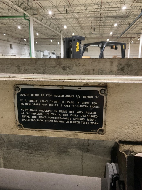 ¼” X 10’ Mechanical Squaring Shear with Cincinnati Front Operated 36” Power Backgauge, Dovetail Slots in Shear Table, Electric Foot Switch, Automatic Pressurized Lubrication, Interlocked All Steel Construction, Non-Float Inclined Ram and Extra Set of Shear Blades., Shearing Capacity (Mild ...more