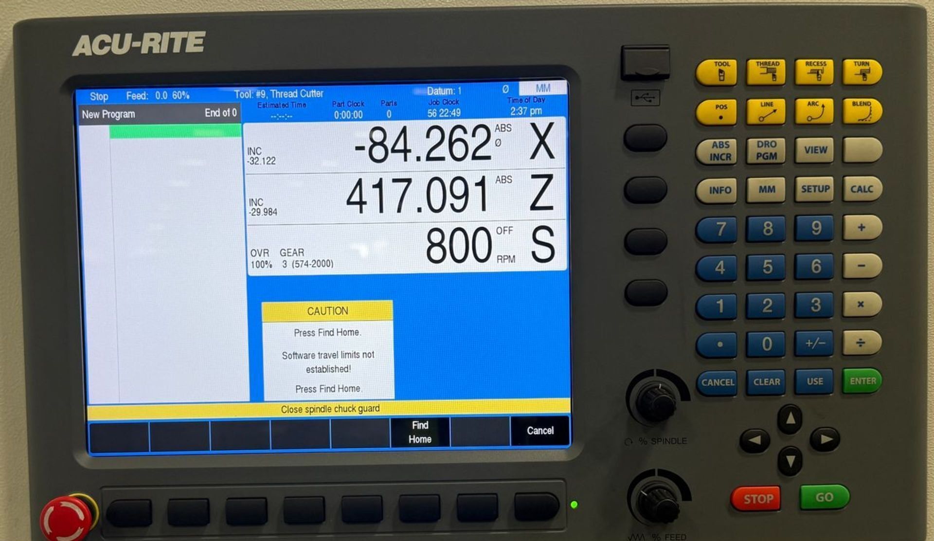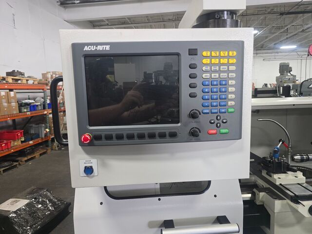 Used CNC Lathe, 14" swing over bed, 40" between centers, spindle speeds up to 2000 RPM, ACU-RITE control. s include DRO mode, threading cycles, G-code support, and more. Approx. weight: 2,750 lbs., SWING OVER BED. 14", SWING OVER CROSS SLIDE. 6.7", HEIGHT OF CENTER. 6.8", DISTANCE BETWEEN CENTERS. 40", CROSS SLIDE ...more