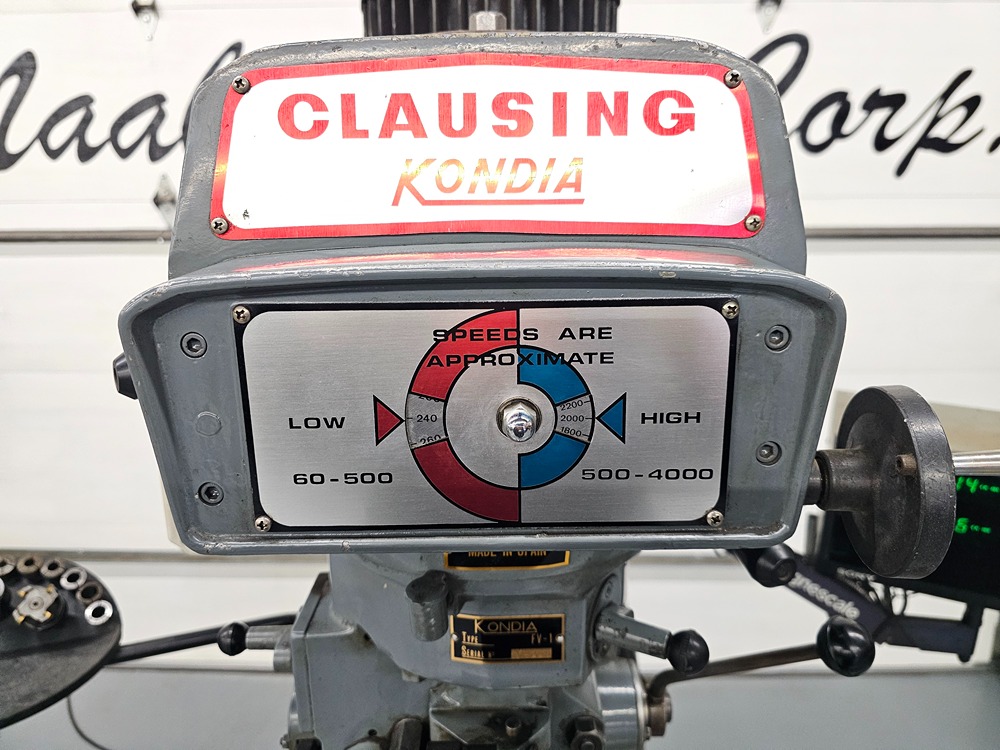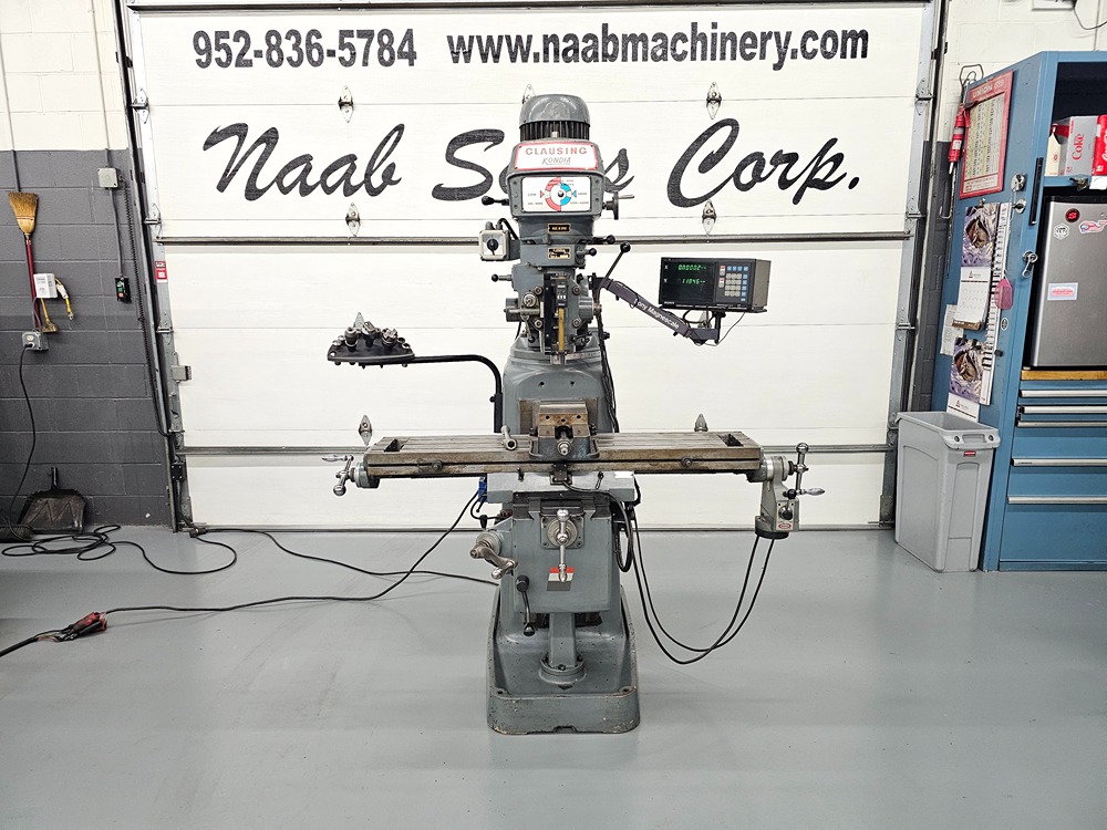 Clausing Kondia #FV-1, Vertical Milling Machine, 9" x 48" table, 30" longitudinal travel, 15" saddle travel, 16.5" knee travel, 23" ram travel, 3 HP, 4000 RPM, 2-axis Acu-Rite digital read out, 220 V. Manufacturer: Kondia Model: FV-1 Table: 48.00 HP: 3.0 Stock # 16727 Price: $6,250 USD Request Info 10 Play VideoFor Sale by Naab Sales Corporation Surplus Record Dealer Since 2007 Contact Seller Blaine, MN J.Van Heuveln 952-93...> Show Seller's Phone Number 952-933-6755 Let the seller know you found their listing on Surplus Record! View More Naab Sales Corporation 's ListingsDescriptionHere We Have:Clausing Kondia Model FV-1 Vertical Milling MachineWith: 2 Axis Acu-Rite DROSerial # Y-226Specifications:Size of table 9” x 48”Longitudinal travel 30”Saddle travel 15”Knee travel 16 ½”Ram travel 23”Quill travel 5”Throat distances 6-5/8” – 29-11/16”Spindle taper R-8Distance spindle to table 0” to 18-5/16”Quill diameter 3-3/8”Quill feed per spindle revolution .0015”, .003”, .0047”Spindle speeds 60-4000 rpmMotor 3 hpApproximate floor space 78” x 88 ¾”Approximate height 82 ½”Approximate weight 3050 lbsWired 220 Volt 3 PhaseComplete With:2 Axis Sony Magnescale DROMitutoyo Digital Scale On QuillX Axis Servo Power Feed6” Machine ViseAssorted R-8 ColletsOne Shot LubeDraw Bar Request More Information from SellerInquire Further with Naab Sales Corporation! "*" indicates required fieldsName*Company*Email* PhoneZip / Postal Code*QuestionMake an OfferRequests Send me a shipping quote I am interested in financingSend Copy Email me a confirmation of this inquiryBuyer Protection Use our partner Escrow.com to buy or sell equipment safelyBuyer Protection Send me info about buyer protectionThis field is hidden when viewing the formDealer Email Buyers Who Viewed This Listing Also Viewed …JUST ADDED! Clausing Kondia #FV-1, Vertical Milling, ProtoTrakM2 CNCCategory: CNC Vertical Bed MillsSeller: Dominion Air & Machinery CoLocation: Roanoke, VA Mfr: KondiaModel: FV-1 Kondia, Clausing #FV-1, knee mill, 33" X, 15" Y, 16" Z, 3 HP, 9" x48" tbl, 60-4000 RPM, Accu-Rite digital read out, power draw bar, 1997Category: Bed and Knee Milling Machines - Vertic...Seller: Machinery Works IncLocation: Belgium, WI Mfr: KondiaModel: FV-1Year: 1997 Kondia Powermill #FV-1, vertical mill, SWI ProtoTrak EMX Control, 9" x48" table, 3 HPCategory: CNC Vertical Bed MillsSeller: Perfection GlobalLocation: Elk Grove Village, IL Mfr: KondiaModel: FV-1Motor: 3 HPTable Size: 48" x 9"Table Travel (X-Axis): 29"Table Travel (Y-Axis): 14"T-Slot Size: 5/8"Quill Travel: 5"Ram Travel: 23"Spindle Speed Low: 60 - 500 RPMSpindle Speed High: 500 - 4000 RPM, Southwestern Industries Proto Trak EMX ControlMaxi-Torque Rite Tool Lock.JUST ADDED! Alliant #RT2, Vertical Mill, w/Digital Measuring Display, 9" x 48" Table, 3 HP, 220/400 VCategory: Bed and Knee Milling Machines - Vertic...Seller: HGR24Location: Euclid, OH Mfr: AlliantModel: RT2Inventory No. 0126-044-0022 Manufacturer Alliant Model No. RT2 Name Vertical Mill Arrival Date 01-22-2026 Dimensions L x W x H (inches) 58 x 66 x 82 Capacity 48"X 9" Electrical 3/50/60/220/440 Weight (lb.) 2145 Category Machine Tools Condition Used Available Quantity 1 Serial No. 80613059 Item 3 Hp, W/ Digital ...moreJUST ADDED! Republic-Lagun #FTV-2, Vertical Milling Machine w/DRO, 9" x 48" table, 34.6" x 16" x 16" travel, 22-3/16" adj, 3 HP, 230/460 V.Category: Bed and Knee Milling Machines - Vertic...Seller: Norman Machine Tool LtdLocation: Baltimore, MD Mfr: Republic-LagunModel: FTV-2Republic Lagun 9″ x 48″ Variable Speed Vertical Milling Machine with Digital Readout, FTV-2, Inventory # 10010, Model: FTV-2, S/N: 16094, Table Size: 9″ x 48″, Max. Weight of Workpiece: 441 lbs., X-Axis: 34.62″, Y-Axis: 16″, W-Axis: 16″ (Vertical Knee), Z-Axis: 5″ ...moreShare × "*" indicates required fieldsYour Name*Your Email* Recipient's Email* Note to Recipient