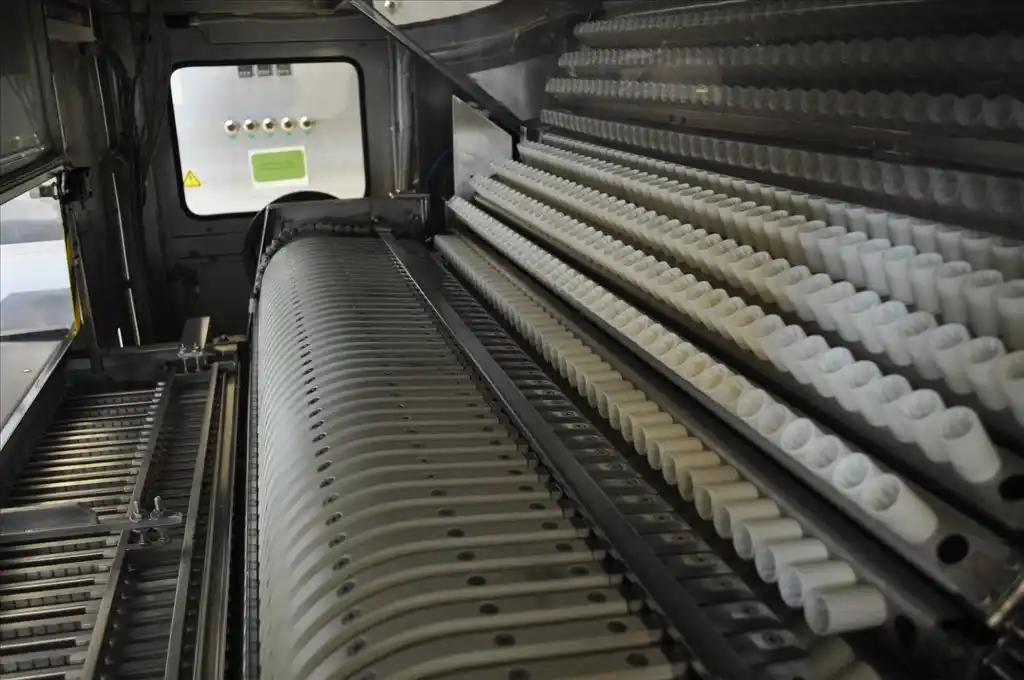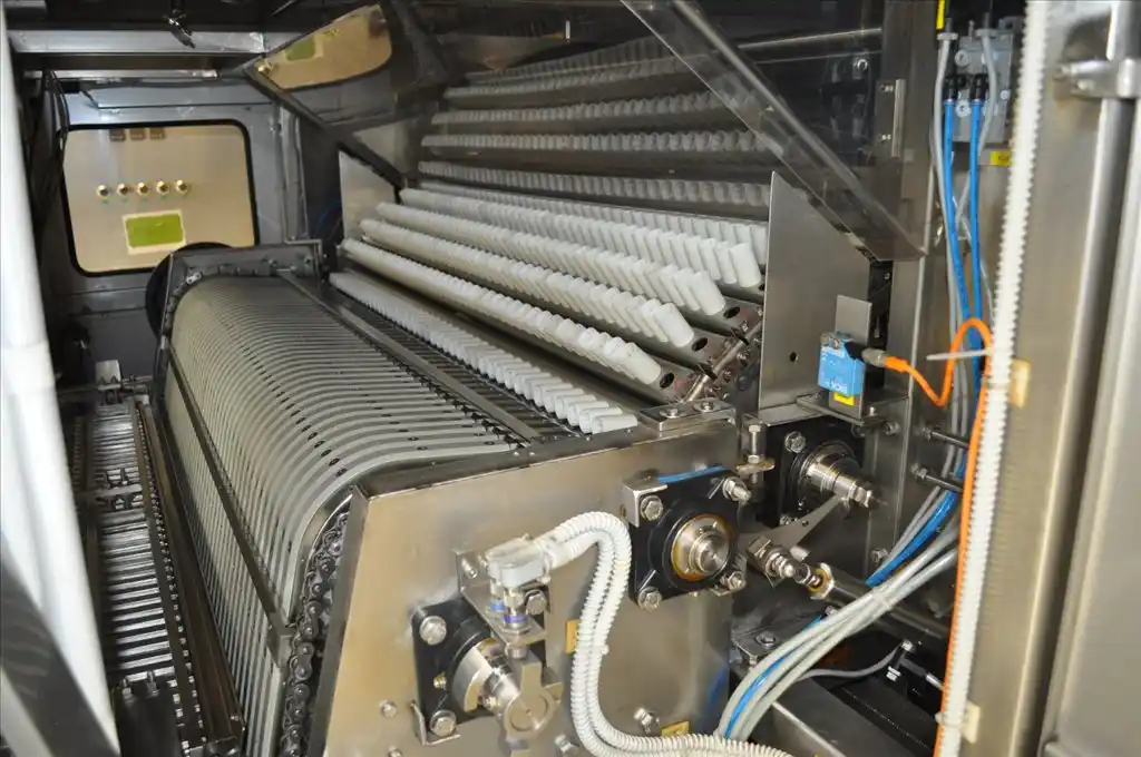 Eisai, Model RMS-200-5, Plain and coated tablet, soft gelatine, capsule and hard candy, plain and coated tablet sorter rated up to 500,000 tablets per hour – depending on materials, application and machine configuration. 18" wide x 8" long x 14" deep product hopper with stepper driven lift for ...more