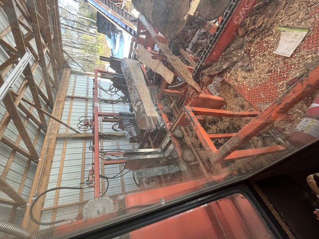 CLEEREMAN MODEL 36 Proportional Carriage: -- Right hand, 3-headblock, headblock spacing of 6'3" between 1 and 2; 2'-10" to 4'-10" between 2 and 3; 3rd headblock is movable with about 2' of stroke cable hook-up one end and cable ratchet on the other end. -- Pantograph, hydraulic power package; bottom ...more