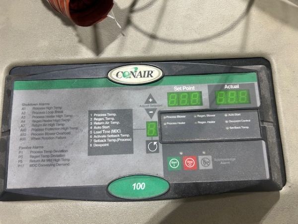Conair #W100, Desiccant Dryer, DC-1 Control, 100 PPH, 150-375°F Manufacturer: Conair Model: W100 Stock # 19397C Price: $1,300 USD Request Info 3 For Sale by Nationwide Machinery Llc Surplus Record Dealer Since 2025 Contact Seller Troy, MI Kathy Gustaw 586-60...> Show Seller's Phone Number 586-604-2327 Let the seller know you found their listing on Surplus Record! View More Nationwide Machinery Llc 's ListingsDescription Conair W100 Desiccant DryerS/N 293558SPECIFICATIONS:- Capacity: 100 lbs/hr- Temperature range: 150-375 degrees F- Electrics: 230/3/60DC-1 CONTROL:- 6 Character, 7 Segment, LED display for high visability or setpoint and actual operating parameters- Full access to setup parameters and alarms through error codes- Autostart count down timer- Operator password protection- Return air temperature display Request More Information from SellerInquire Further with Nationwide Machinery Llc! "*" indicates required fieldsName*Company*Email* PhoneZip / Postal Code*QuestionMake an OfferRequests Send me a shipping quote I am interested in financingSend Copy Email me a confirmation of this inquiryBuyer Protection Use our partner Escrow.com to buy or sell equipment safelyBuyer Protection Send me info about buyer protectionThis field is hidden when viewing the formDealer Email Buyers Who Viewed This Listing Also Viewed … Conair #W-50, W-Series cariusel plus dryer, DC-A Control, 15-100 PPH, 2.5" outlet/inlet tubeCategory: Desiccant Air DryersSeller: Absolute Machinery CorpLocation: Worcester, MA Mfr: ConairModel: W-50Year: 2016Voltage: 460/3/60, Model: W50. Conair #W2000, Carousel Plus Desiccant Dryer, 2000 lb/hr, 150-375°F temp. range, 30 KW heater, DC-T TouchView, 460 V., 3-Ph., 60 HzCategory: Desiccant Air DryersSeller: Arlington MachineryLocation: Lake Zurich, IL Mfr: ConairModel: W2000Used 2,000 LB/HR Conair Carousel Plus Dryer System Complete With Four Hoppers, Model W2000, with DC-T TouchView Process Temp Range: 150°F – 375°F -40°F Dewpoint 30 kW Process Heater 460/3/60, 66.8A High-Efficiency Process & Regen Blowers With Aftercooler and Intercooler Package Continuous ...more Conair Franklin #DHD0045030000, Air Dryer, 480 VCategory: Desiccant Air DryersSeller: HGR24Location: Euclid, OH Mfr: ConairModel: DHD0045030000Inventory No. 1225-003-0086 Manufacturer Conair Franklin Model No. DHD0045030000 Name Air Dryer Arrival Date 12-05-2025 Dimensions L x W x H (inches) 30 x 28 x 91 Electrical 3/60/480 Weight (lb.) 590 Category Plastics Condition Used Available Quantity 1 Serial No. D50013 Item 7.83 A, Compu-dry Cd30.JUST ADDED! Eisbar #DAS-E23, Dry Air System, 28.5 KW, 10 bar, 440-480 Volts, 3PH, 2011Category: Desiccant Air DryersSeller: Garland Bros IncLocation: Suwanee, GA Mfr: EisbarModel: DAS E23Year: 2011PLEASE REVIEW: We would ask that potential buyers please examine the photographs carefully, and understand what you are buying. Please submit all questions PRIOR to your purchase. *Your purchase includes a 30 day warranty.* We cannot negotiate price or terms after the sale is complete. Payment is expected within 24 ...more Conair #D400H, High Heat Desiccant Dryer, No Hopper, 900 lb., 300 cfmCategory: Desiccant Air DryersSeller: Perry Videx LLCLocation: Hainesport, NJ Mfr: ConairModel: D400HUsed Conair model D400H high heat desiccant dryer, 300 cfm. Have carousel desiccant cartridges, operator controls, no hopper. Previously used with 900-1000 lb hopper., Conair D400H.Share × "*" indicates required fieldsYour Name*Your Email* Recipient's Email* Note to Recipient