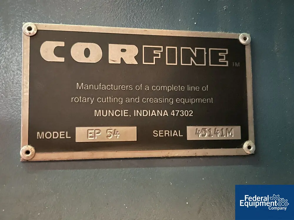 Used Corfine Econopress Pass Thru Die Cutter, Model EP54, 54" wide, with motor drive, serial# 45141M.