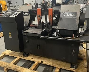 COSEN (USED) MODEL C-325NC AUTOMATIC HORIZONTAL SCISSOR-STYLE BANDSAW CUTTING CAPACITY - 12.8" ROUND - 12.8" X 15" (H X W) RECTANGULAR BLADE SYSTEM - 150.4" X 1.25" X 0.042" BLADE SIZE 5 HP BLADE MOTOR BLADE GUIDES CARBIDE W/BEARINGS SNC-100 SMART NC, PROGAMMABLE FOR UP TO 100 JOBS CONTROLLER FEEDING AUTOMATIC, MULTI-STROKE HYDRAULIC, CAST IRON W/SPLIT JAW AND REPLACEABLE WEAR PLATE VISE 28.7" WORKBED HEIGHT BLADE BRUSH MOTOR-DRIVEN AND SYNCHRONIZED FOR CLEANING