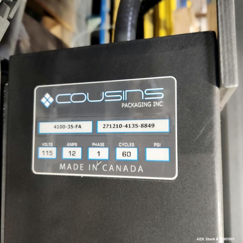 Cousins #Titan-4100-35-FA, Automatic Stretch Wrapper, 20" film, 35/hr, 50" x 50" x 86" max load, 1-12 RPM, 0.5 HP, variable speed, 115 V., Panasonics PLC, film threader (14 available) Manufacturer: Cousins Model: TITAN-4100-35-FA Stock # 73301001 Request a Quote 4 For Sale by Aaron Equipment Co Surplus Record Dealer Since 2024 Contact Seller Schaumburg, IL Ken Matuszak 708-41...> Show Seller's Phone Number 708-412-6077 Let the seller know you found their listing on Surplus Record! View More Aaron Equipment Co 's ListingsDescription used- cousins automatic stretch wrapper, model titan 4100-35-fa. rated up to 35 loads/hour; 50" l x 50" w x 86" h max. load size; 24" w x 24" l x 24" h min. load size; double flange bearing support system; twin v-belt drive pulleys with belt tensioner; super rapid thread 20" capacity pre-stretch film carriage; special film threading device; 33-313% fixed stretch capability; 1-12 rpm rotational speed c/w soft start acceleration; 1/2 hp dc variable speed motor; panasonic plc. 1/60/115v. Request More Information from SellerGet Your Price from Aaron Equipment Co! "*" indicates required fieldsName*Company*Email* PhoneZip / Postal Code*QuestionMake an OfferRequests Send me a shipping quote I am interested in financingSend Copy Email me a confirmation of this inquiryBuyer Protection Use our partner Escrow.com to buy or sell equipment safelyBuyer Protection Send me info about buyer protectionThis field is hidden when viewing the formDealer Email Buyers Who Viewed This Listing Also Viewed …JUST ADDED! Cousins #LPSW-A, Pallet Wrapper, w/Matrix 365 Display, 115 VCategory: Pallet WrappersSeller: HGR24Location: Euclid, OH Mfr: CousinsModel: LPSW-AInventory No. 0126-063-0004 Manufacturer Cousins Model No. LPSW-A Name Pallet Wrapper Arrival Date 01-26-2026 Dimensions L x W x H (inches) Unavailable Electrical 1/60/115 Weight (lb.) 2505 Category Packaging Condition Used Available Quantity 1 Serial No. 050116-SAL-11866 Item 12 Amps, Matrix 365 Display, Made In ...more Cousins, Pallet WrapperCategory: Pallet WrappersSeller: Machinery Exchange InternationalLocation: Posen, IL Mfr: Cousins Cousins #Hercules, Stretch Pallet Wrapper, Extra wideCategory: Pallet WrappersSeller: Machinery & Equipment CoLocation: Brisbane, CA Mfr: CousinsModel: HERCULESCousins Hercules Stretch Pallet Wrapper. Engineered for extra-wide stretch wrapping tasks. Previously used at a major beverage processing facility. Serial number unavailable., Previous Use: Palletizing Carbonated Beverages., Basis: FOB. Fanuc #M-410iC/185, 4 axes, servo driven, robotic case palletizing, automatic pallet stretch wrapperCategory: Pallet WrappersSeller: Frain IndustriesLocation: Carol Stream, IL Mfr: FanucModel: M-410IC/185Fanuc, 4 axes, servo driven, robotic case palletizing, automatic pallet stretch wrapper. Unit is capable of moving product from floor level up to 123" in height, and has range of motion of 720 degrees, rated up to maximum pick-up weight of 185 Kg. vacuum pic-n-place head mounted on robotic arm with 123.72". ...more Cousins #4100T-FSR, Free-Standing Rear Mount Semi-Automatic Pallet Stretch Wrapper, 50" x 50" max. load size, 30 loads/hr., 1/2 HP, 12 amps, 115 Volts, 1PHCategory: Pallet WrappersSeller: Revelation MachineryLocation: Chicago, IL Mfr: CousinsModel: 4100T-FSRYear: 1900Make: Cousins, Model: 4100T-FSR, Year: 1900, Machine Location: Wisconsin, Used Cousins 4100T-FSR Free-Standing Rear Mount Semi-Automatic Pallet Stretch Wrapper:, PRODUCTION SPEED:, – 30 loads per hour throughout, – NOTE: Process rates will vary with load size, number of wraps & forklift load/unload ...moreShare × "*" indicates required fieldsYour Name*Your Email* Recipient's Email* Note to Recipient