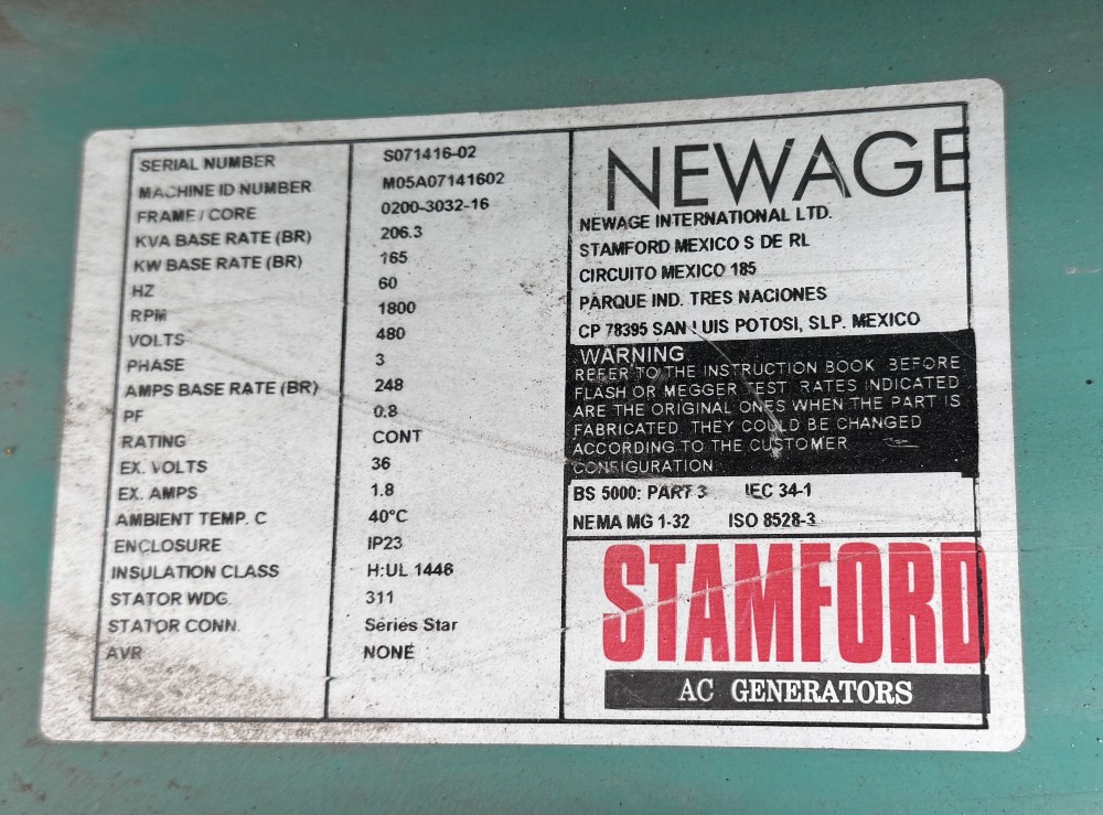 Generac #SG0150KG189, Natural Gas Standby Generator, 201 HP, FGNXB08 engine, weather protected enclosure, 277/480 Volts, Natural gas, 2015
