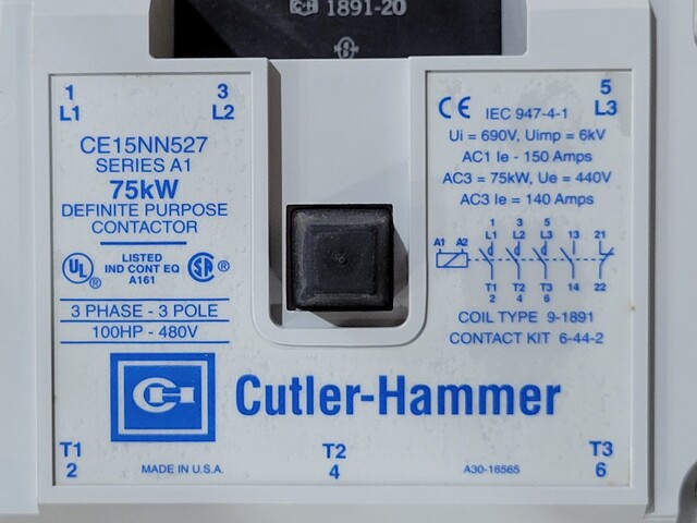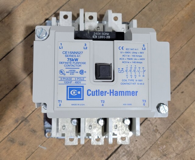 Unused Cutler-Hammer Contactor. Model: CE15BN4AB. Amperage Rating: 10A, Coil Voltage: 110/120V. Frame Size: B-Frame. Frequency Rating: 50-60 Hz. Max Hp Rating: 0.5 HP. Number of Poles: Four-Pole.