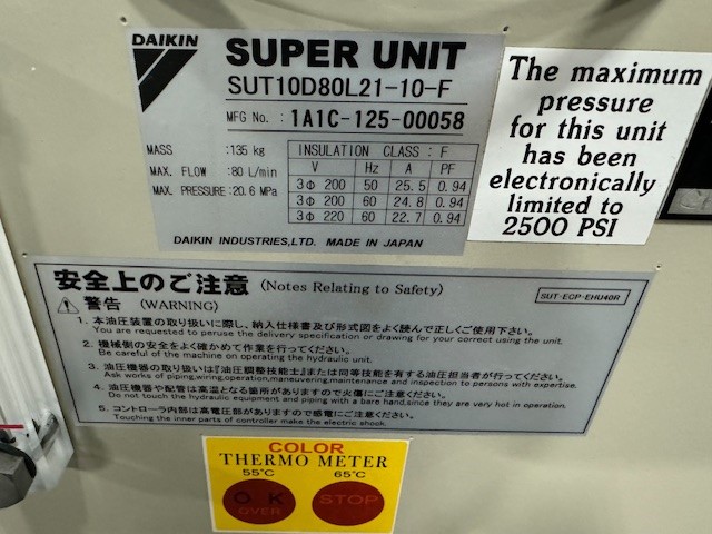 This listing is for a USED DAIKIN EHU40R-M07-A-10 EcoRich Hydraulic Power Unit., This hybrid hydraulic unit from Daikins EcoRich series delivers high-efficiency fluid power with low noise and energy-saving inverter control. Ideal for industrial automation and machine tool applications requiring consistent pressure and ...more