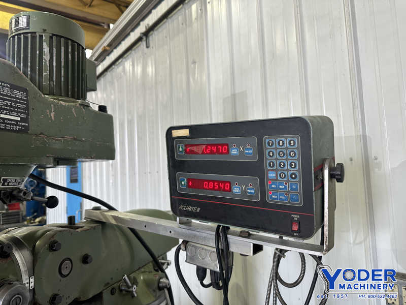 Jet #JTM-1, vertical mill, 9" x42" power feed table, 2 HP, 80-5440 RPM, Sargon 2-Axis digital read out