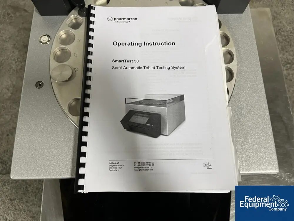 Used Dr. Schleuniger Smart Test 50 Pharmatron Tablet Hardness Testing, serial# 00-230, built 2014.